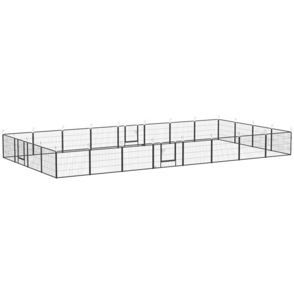 The puppy playpen from Catface is composed of 24 panels which can be changed at will according to the layout of the home. Equipped with 3 doors to facilitate pets in and out, and lock latch is set to protect the safety of pets. The spacious space for pet rest and exercise. It is a convenient and practical pet enclosure that can be applied to both indoor and outdoor activities. You can use it to restrict your pet’s activity area or to separate different pets. A good choice for your pets!