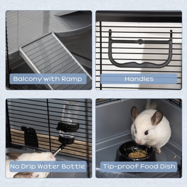 Catface 的小动物笼子,为您的小伙伴们提供一席之地。这款笼子非常适合仓鼠、龙猫和豚鼠等小动物。上部金属框架和可拆卸塑料底座构成了一个超大空间。这款龙猫笼子在阳台下方设有一个隐藏空间,保护您的隐私。笼子内含防滴漏水瓶、带坡道的阳台和防倾倒食盆。双开门设计方便进出笼内补充食物,维护方便。